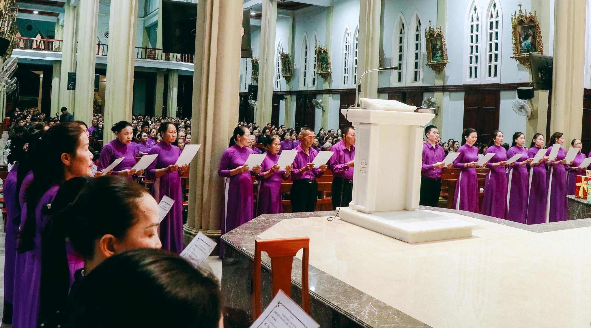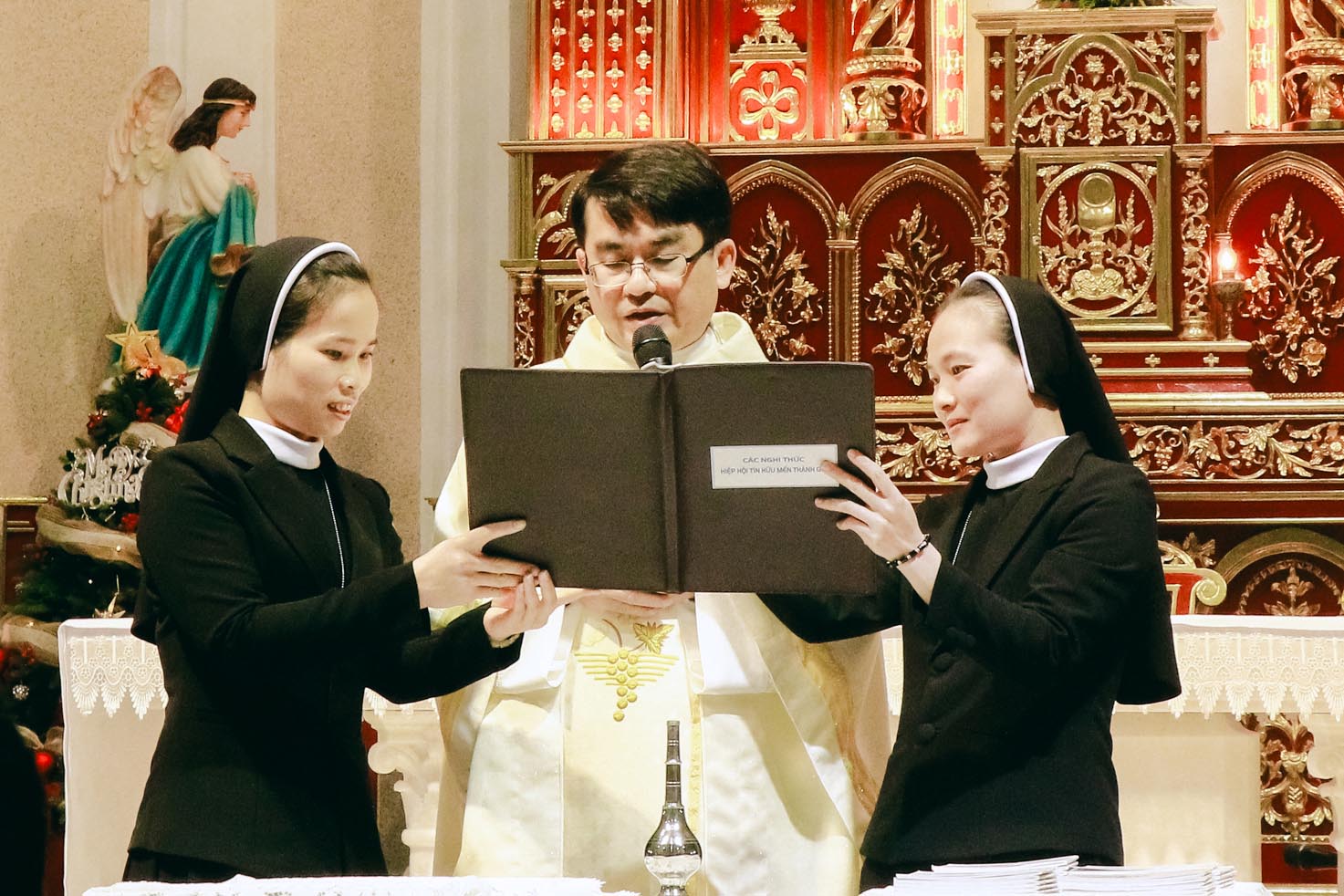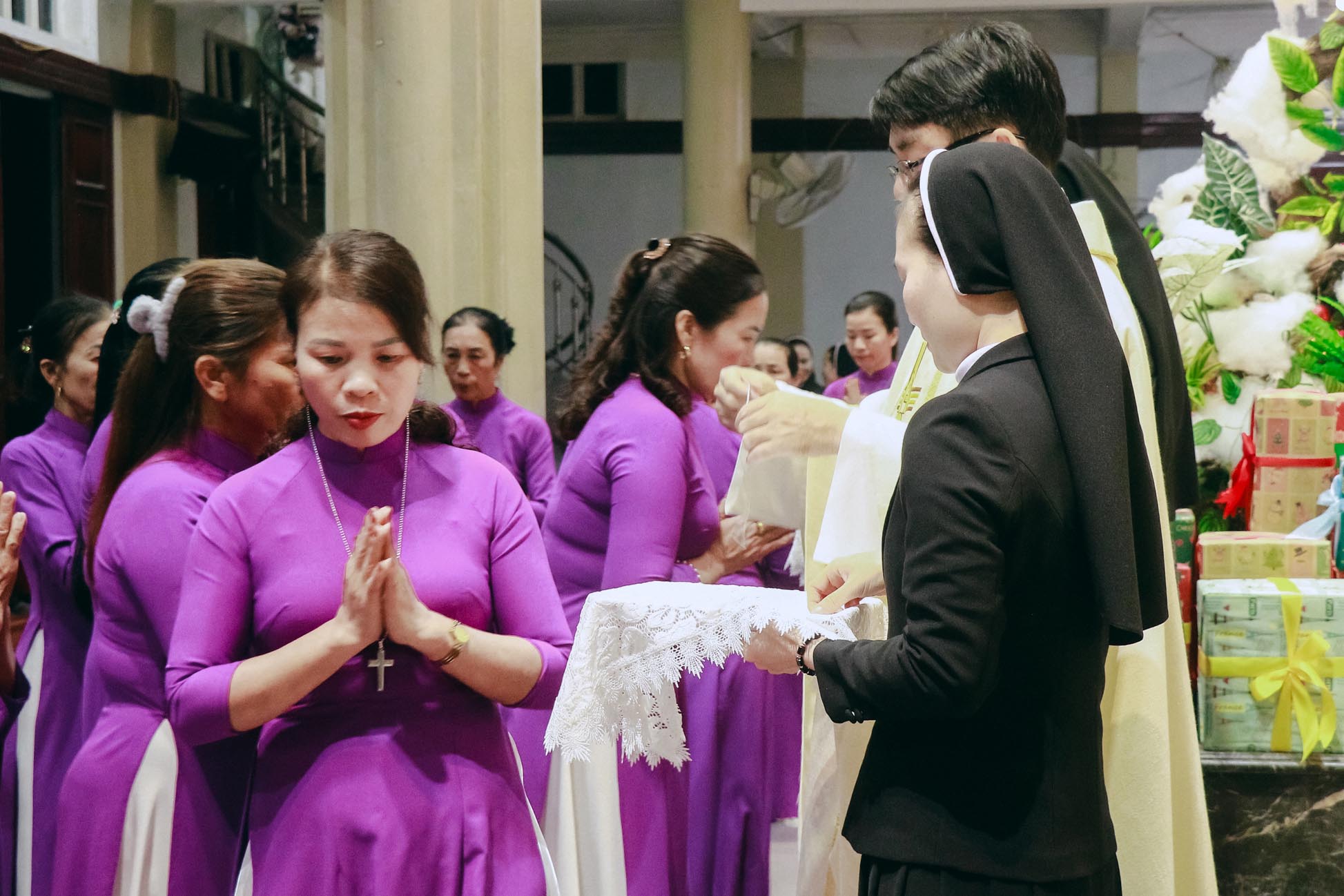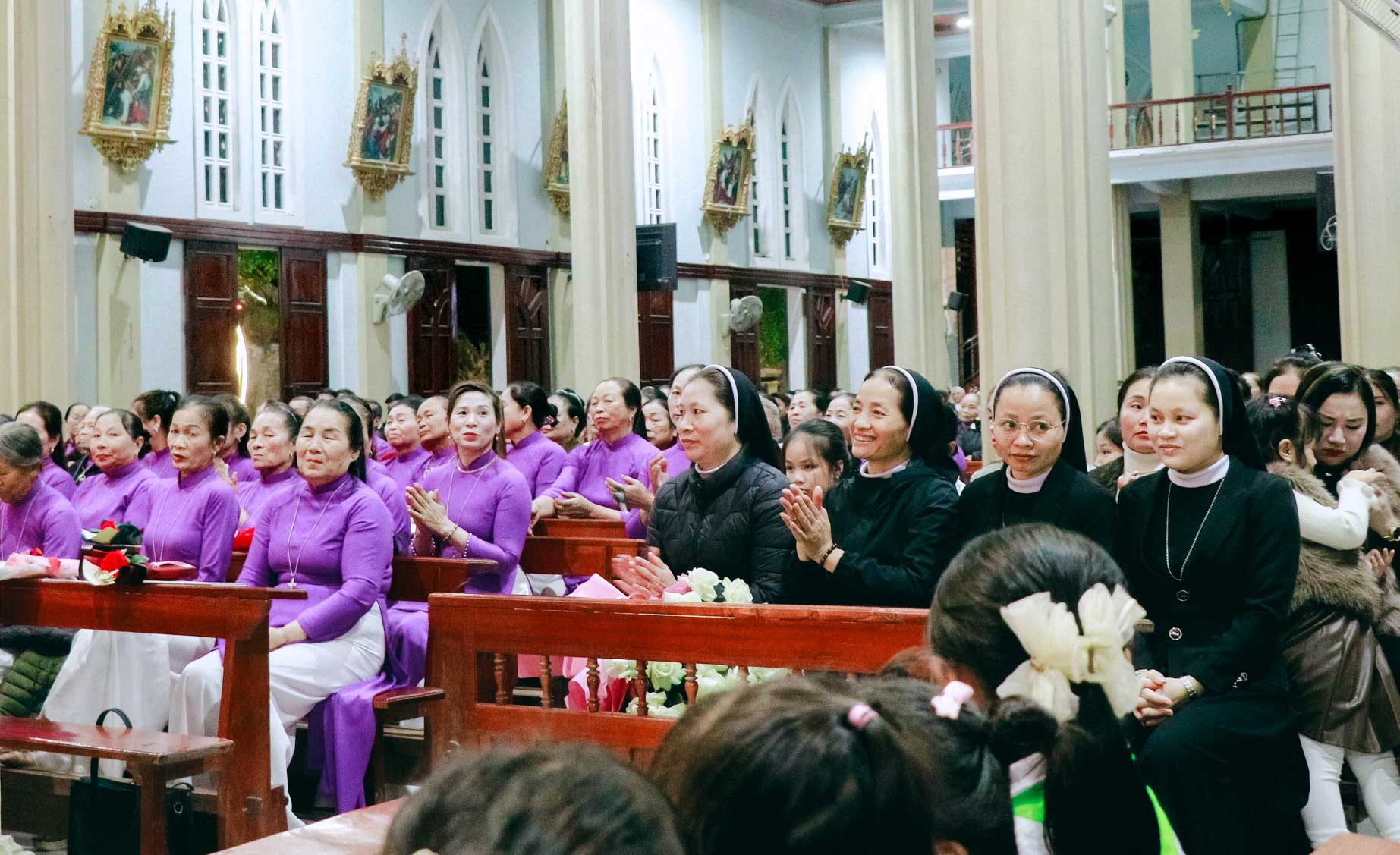 Hiện diện và hiệp thông trong niềm vui của quý anh chị hôm nay có cha Quản xứ Tân Lâm – Antôn Đậu Duy Vinh, cha Antôn Võ Thành Công – Giáo sư và Linh hướng Tiền Chủng viện Thánh Gioan Phaolô II, cha Phêrô Hồ Thái Hùng – Trưởng ban Truyền thông Giáo phận Hà Tĩnh, cùng chị Tổng Phụ Trách Maria Nguyễn Thị Nga, quý chị đặc trách Hiệp hội, quý chị Cộng đoàn Mến Thánh Giá Chân Thành, quý anh chị Hiệp hội và đông đảo cộng đoàn Dân Chúa.