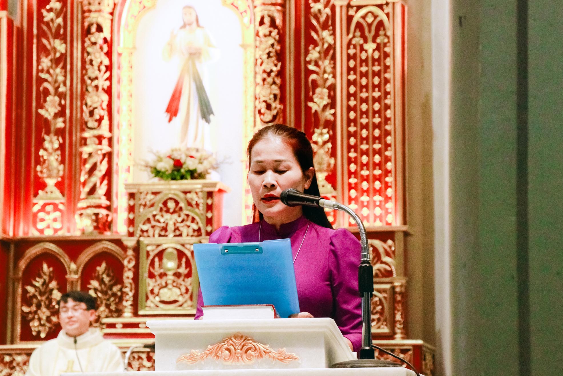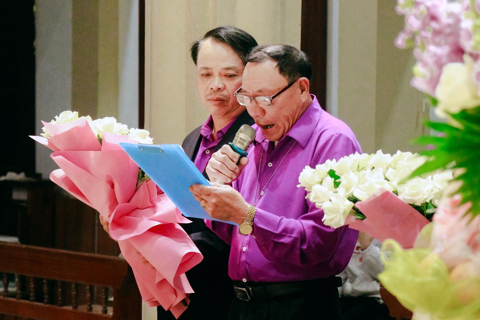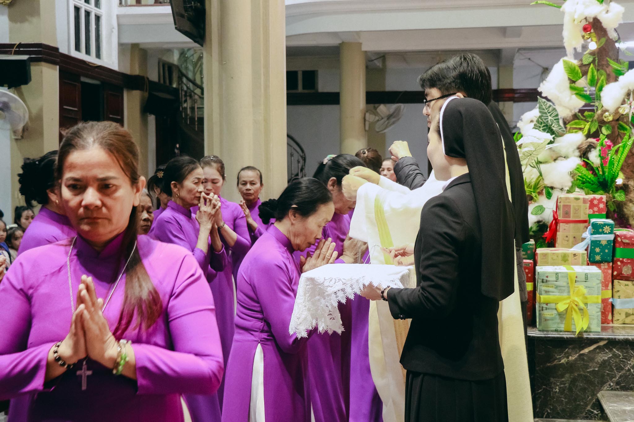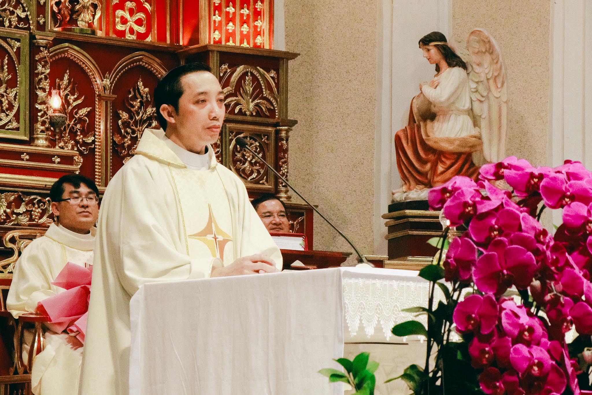 Hiện diện và hiệp thông trong niềm vui của quý anh chị hôm nay có cha Quản xứ Tân Lâm – Antôn Đậu Duy Vinh, cha Antôn Võ Thành Công – Giáo sư và Linh hướng Tiền Chủng viện Thánh Gioan Phaolô II, cha Phêrô Hồ Thái Hùng – Trưởng ban Truyền thông Giáo phận Hà Tĩnh, cùng chị Tổng Phụ Trách Maria Nguyễn Thị Nga, quý chị đặc trách Hiệp hội, quý chị Cộng đoàn Mến Thánh Giá Chân Thành, quý anh chị Hiệp hội và đông đảo cộng đoàn Dân Chúa.