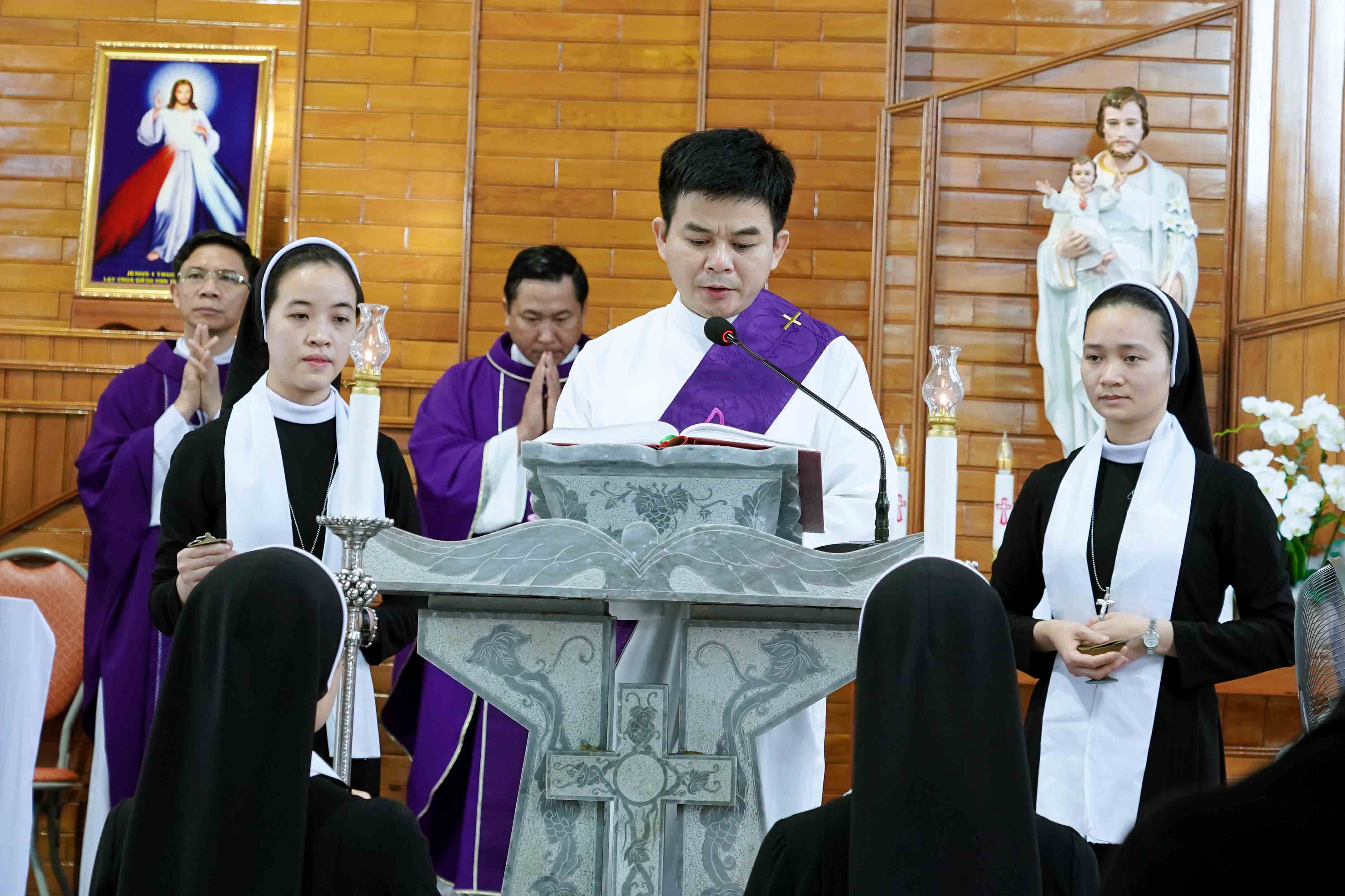 Vào lúc 8h00 sáng ngày 24/02/2026, tại Nguyện đường Cộng đoàn Mến Thánh Giá Trang Nứa, cha Tổng Đại diện Phêrô Nguyễn Văn Vinh đã chủ tế Thánh lễ An táng và tiễn đưa Nữ tu Maria Trần Thị Lam về nơi an nghỉ cuối cùng. Đồng tế với ngài có quý Cha Hạt, quý Cha giáo Đại Chủng viện Thánh Phanxicô Xaviê, quý Cha quê hương và quý Cha Ân nhân. Hiện diện trong thánh lễ có quý thân nhân của chị Maria cùng đông đảo chị em trong Hội dòng Mến Thánh Giá Vinh.